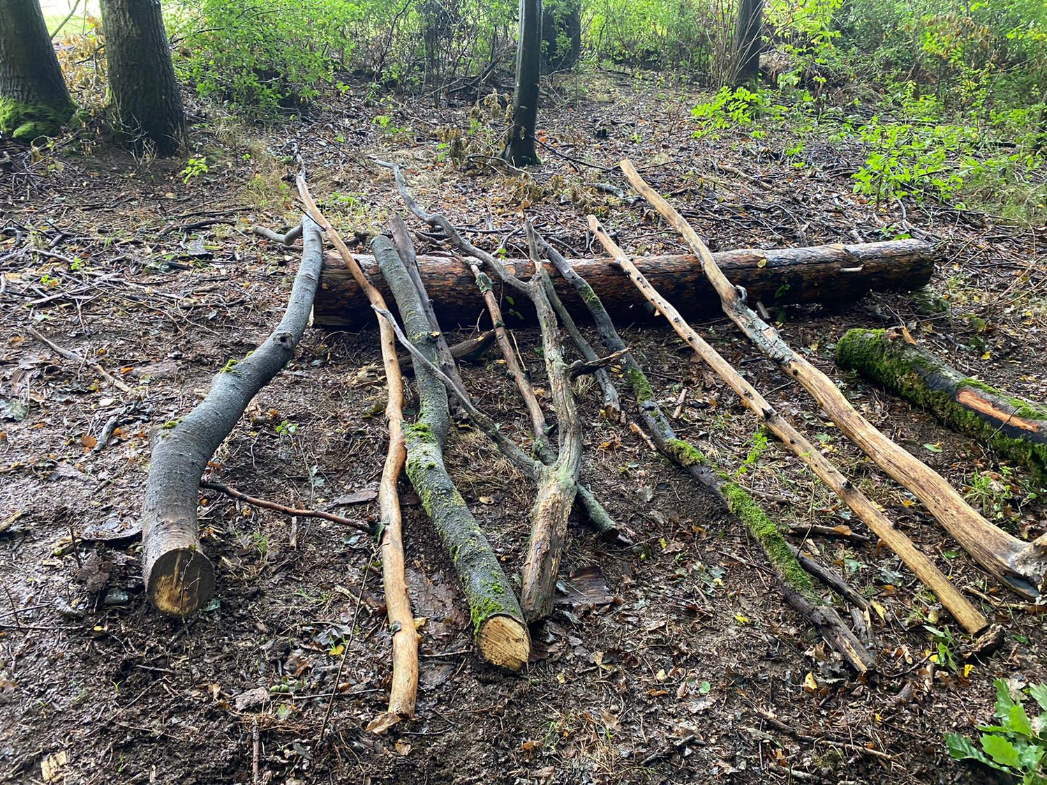 Entrinden und abschleifen: Die von euch ausgesuchten Stämme werden nun sauber entrindet. Hier sieht man das erste Mal die wunderschöne Maserung der Stämme. Abgeschliffen werden Sie um das Ganze zu perfektionieren, splitterfrei und begradigt zu werden.