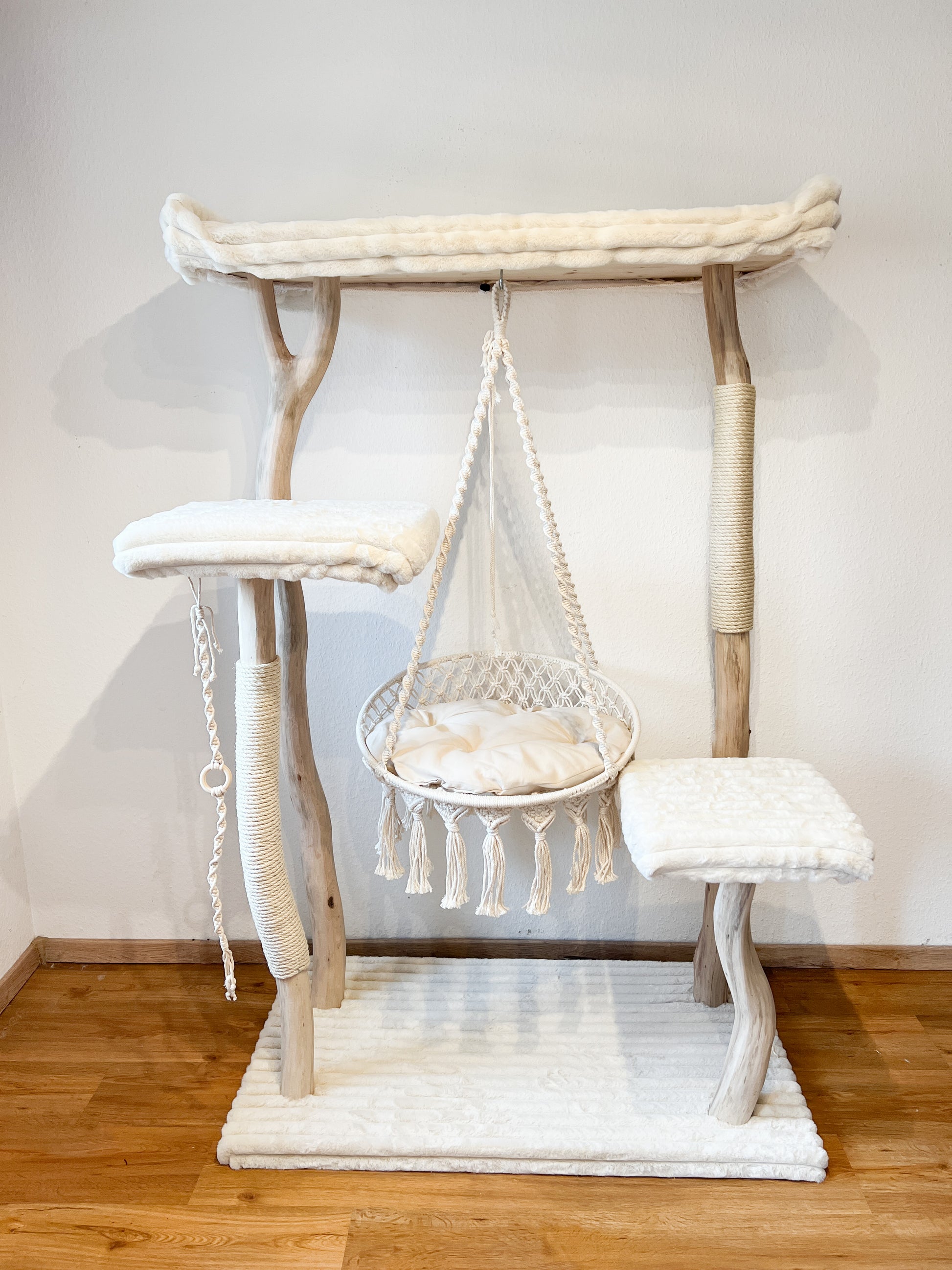 Dieser Kratzbaum wurde aus Buche hergestellt.